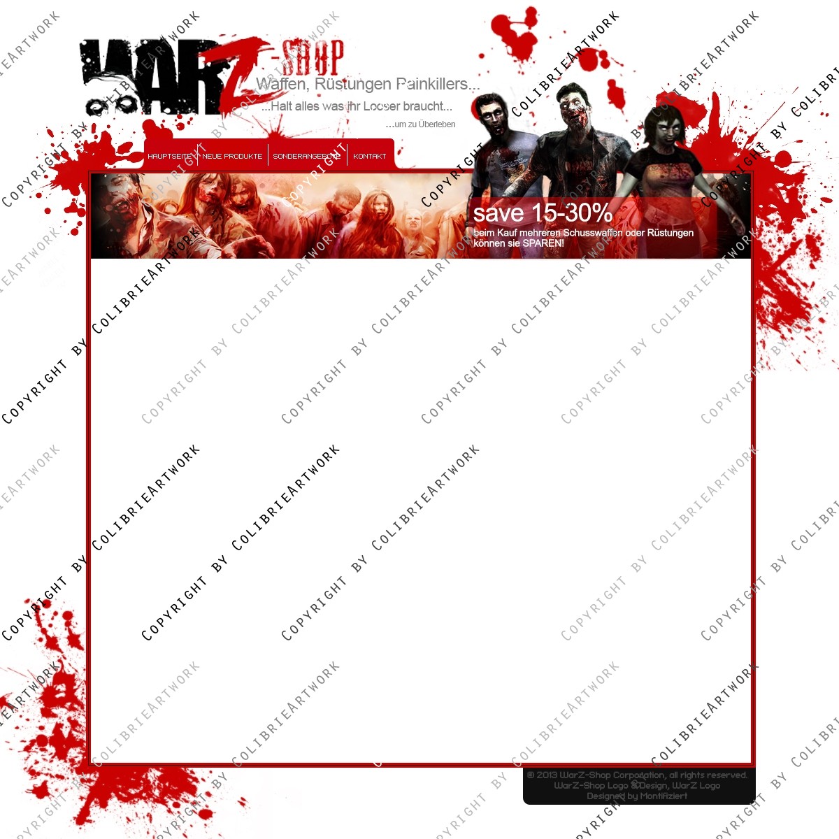 Es handelt sich hierbei um ein WarZshop Website die man aber auch gerne als Community Website für ggf. Survival oder Zombiegames verwenden kann. Für einen kleinen Preisaufschlag kann ich euch das komplette Design noch euren Wünschen anpassen.