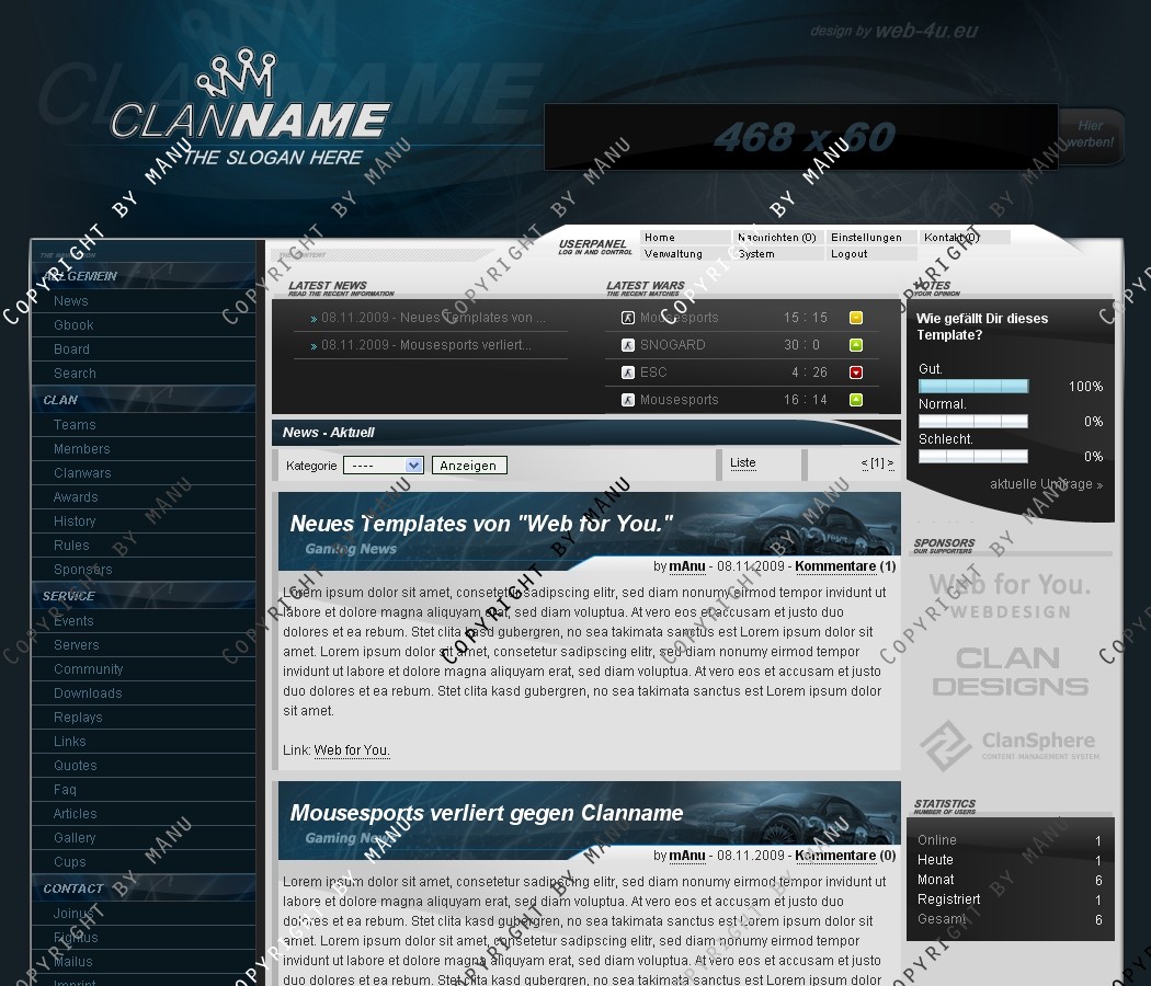 Das Template ist an das Content Management System ClanSphere angepasst und vollständig implementiert. Alle relevanten Elemente sind angepasst und zusätzliche Module sind auch erhältlich. Im Paket enthalten sind folgende Bestandteile: